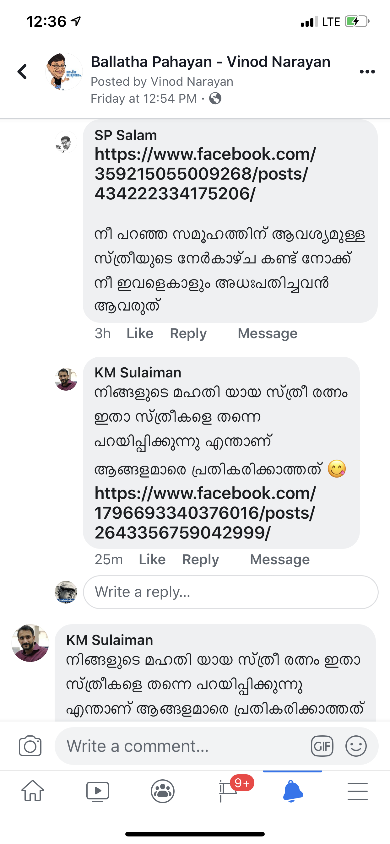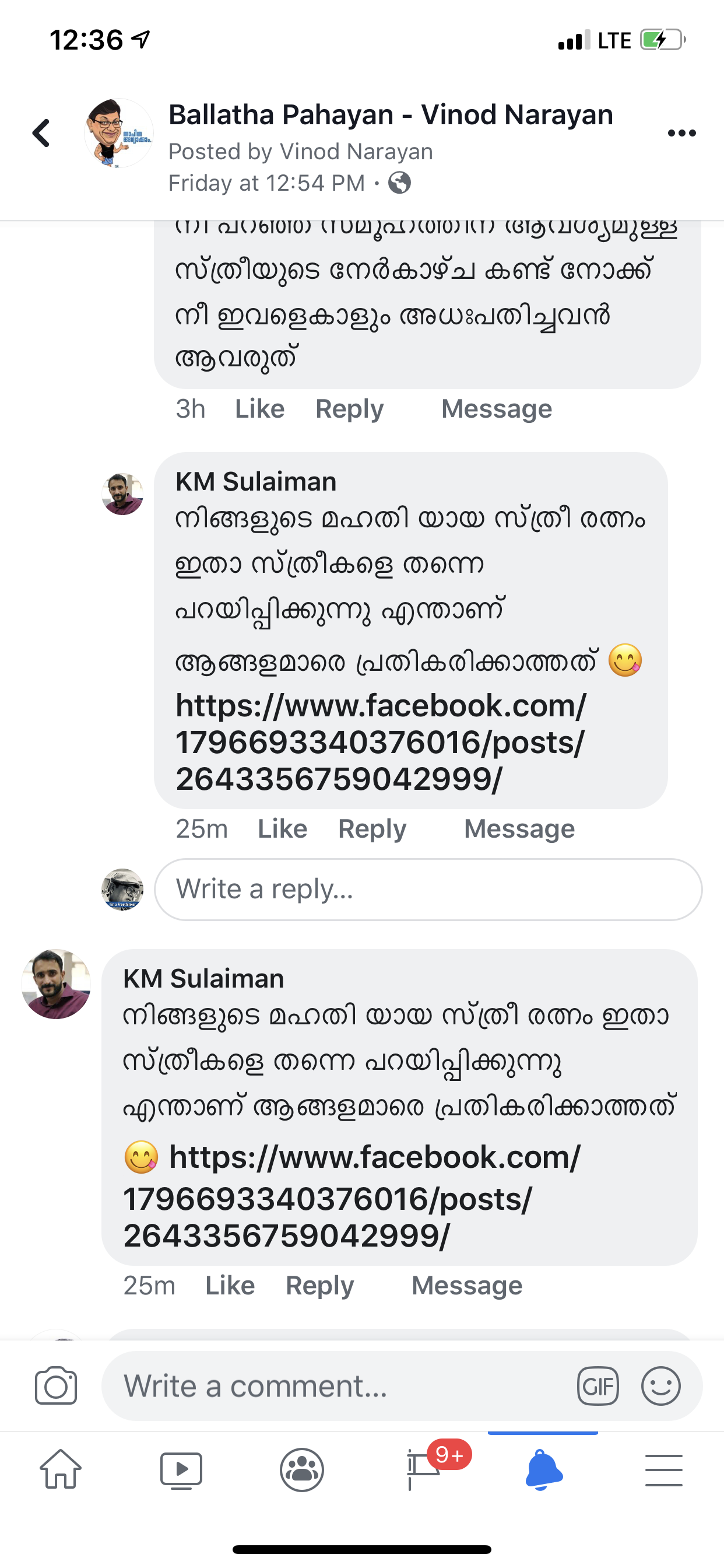 പിന്നെ നിങ്ങൾ സ്വയം തീരുമാനിക്കണം ഈ ജസ്ല പറഞ്ഞ മാനസിക വൈകല്യമുള്ള ഞരന്പ് രോഗി ആണുങ്ങളിൽ നിങ്ങൾ പെടുമോ ഇല്ലയോ എന്ന്… അല്ലാതെ എന്നോട് പ്രതികരണം ചോദിക്കുകയല്ല വേണ്ടത്….. ഇനി ഇങ്ങനെ ഉള്ള ആണുങ്ങളെ ഇല്ലെന്നാണെങ്കിൽ പിന്നെ ഞാനൊന്നും പറയുന്നില്ല… അല്ല എന്ത് പറഞ്ഞിട്ടാണ് 🙂