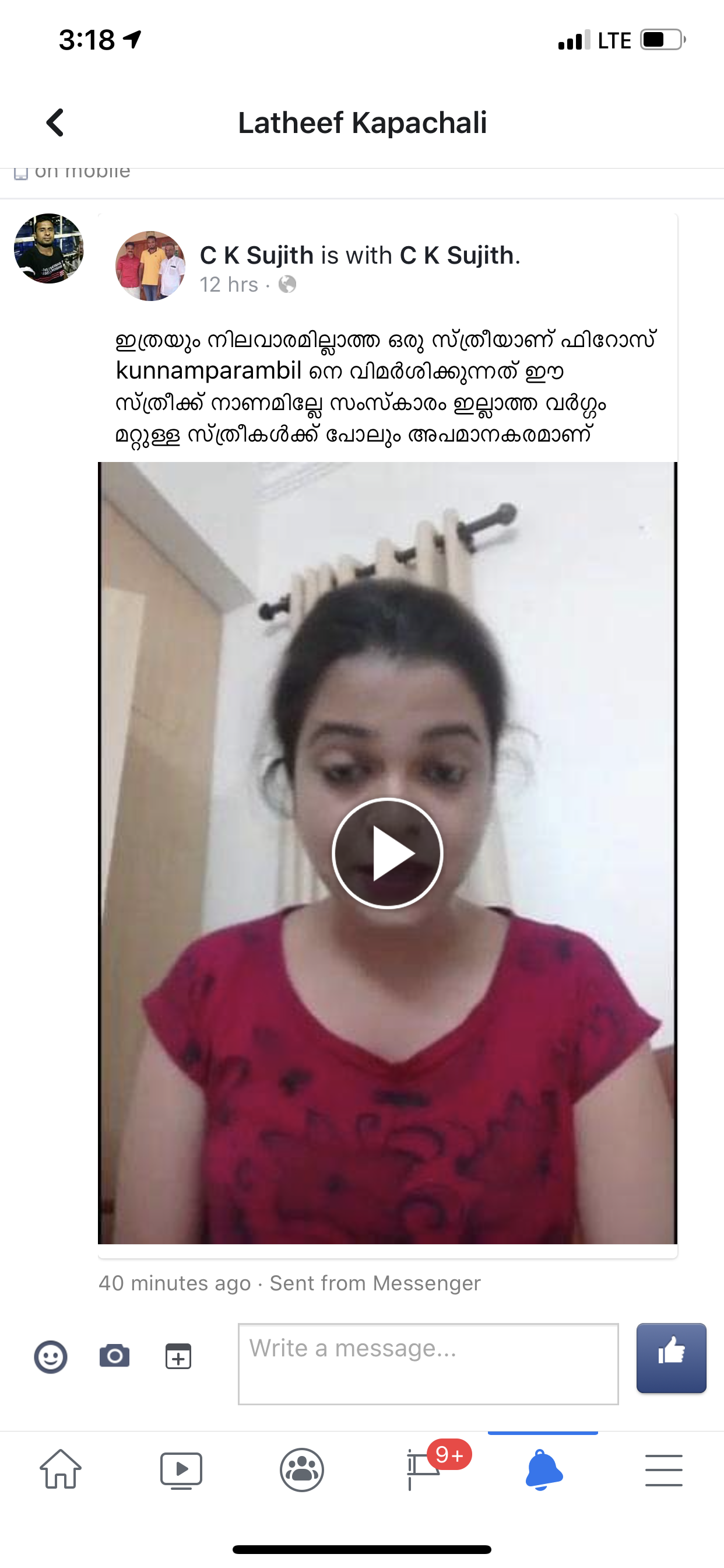 കുറെ എണ്ണത്തിന് കുരു പൊട്ടി എന്റെ മെക്കിട്ട് കയറാൻ വന്നിട്ടുണ്ട്…. ഇവിടെ പോസ്റ്റിന് താഴത്ത് കാണുന്നതൊക്കെ ജസ്ല എന്ന പെൺകുട്ടി ആണുങ്ങളെ അടക്കി പറഞ്ഞ ലേറ്റസ്റ്റ് വീഡിയോ കണ്ടില്ലേ, അതിനെ കുറിച്ച് മിണ്ടുന്നില്ലല്ലോ എന്നും പറഞ്ഞ് എന്റെ എല്ലാ പോസ്റ്റിലും അല്ലെങ്കിൽ ഇൻബോക്സിൽ വന്ന് കരയുന്ന പുരുഷ കേസരികൾക്കുള്ള മറുപടിയാണ്….